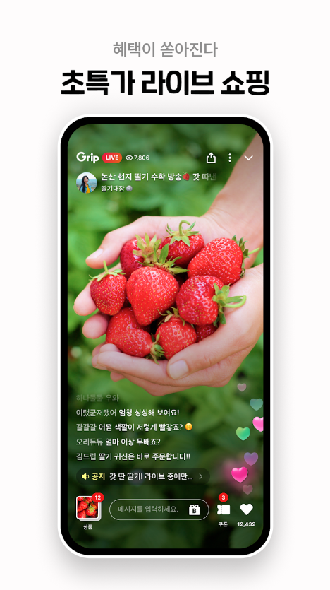 그립을 통해 일상의 쇼핑을 더 즐겁고, 저렴하게 경험할 수 있습니다. 다양한 라이브 방송을 통해 제품을 생생하게 확인하고, 실시간으로 소통하며 구매할 수 있어 쇼핑의 재미를 한층 더합니다.